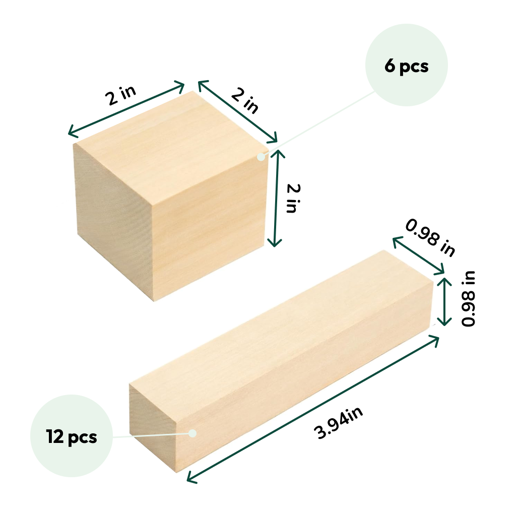 Includes: 18 x Basswood carving blocks (6 cube blocks, 12 rectangle blocks)