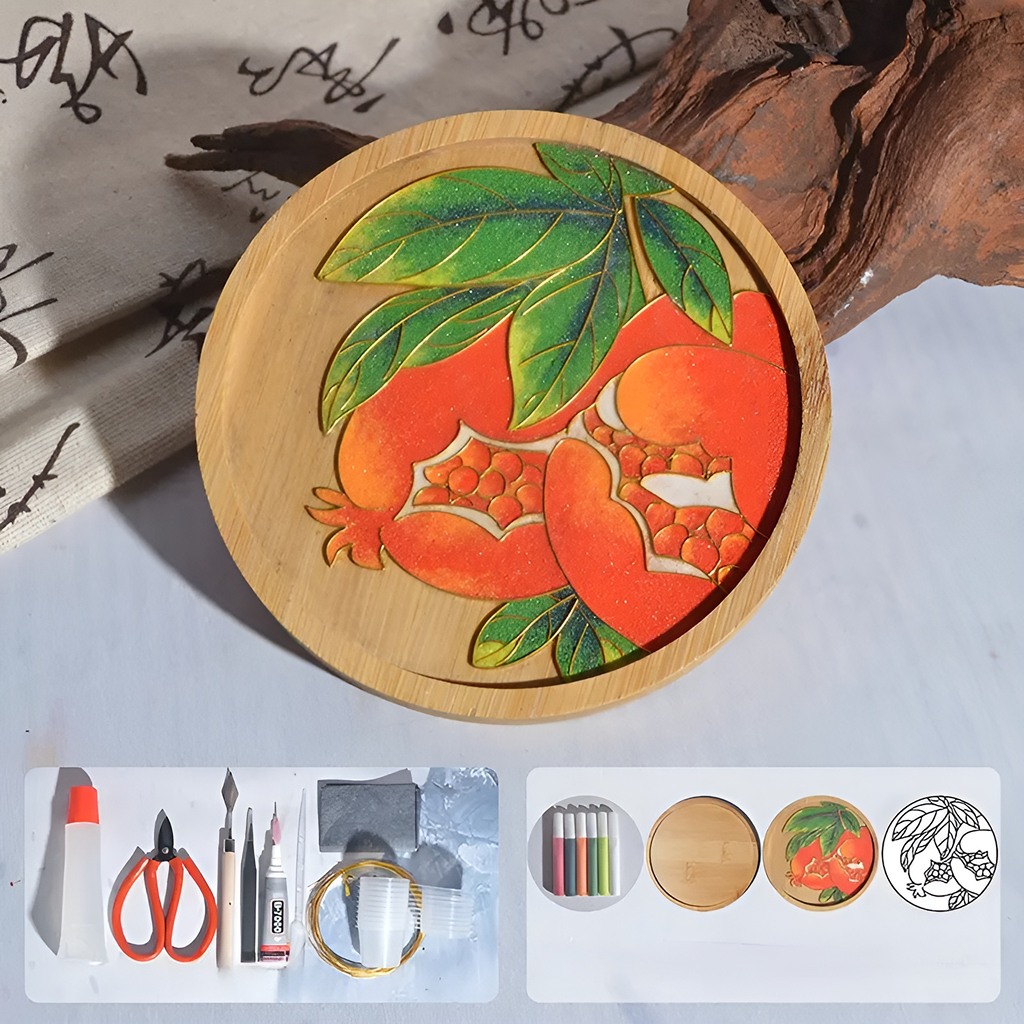 Picture yourself sitting down with a warm cup of tea as you carefully place each piece of wire, adding vibrant sand that brings the design to life. The smooth wood provides a beautiful canvas, while the rich colors of the sand and the thoughtful details of the design create a sense of joy with every layer. This process is more than just crafting—it’s a chance to create a beautiful piece of art that’s both fun and fulfilling.