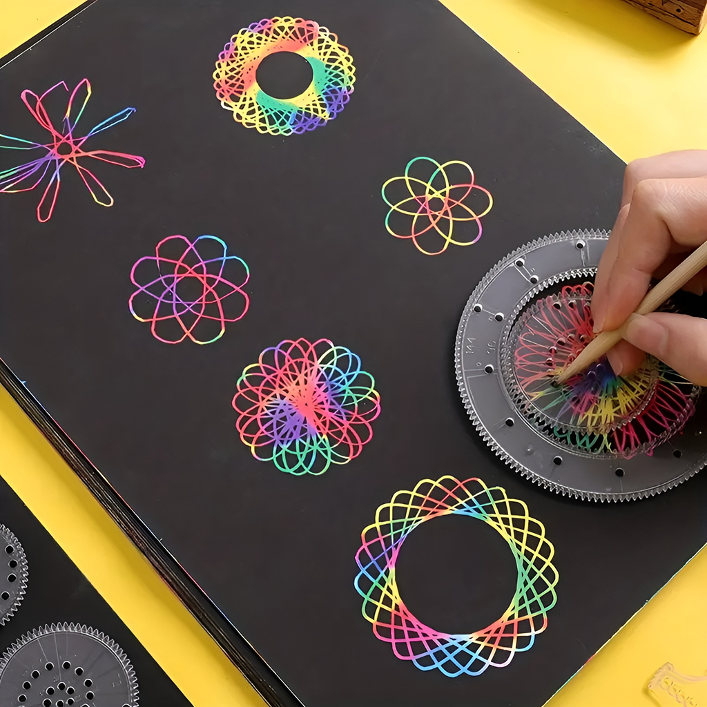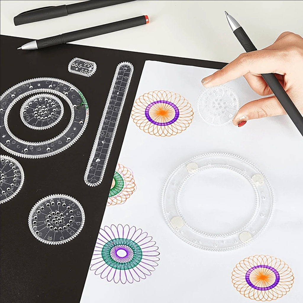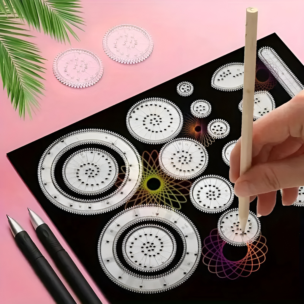 4 stencils and 22 plastic drawing guides to guide your creativity