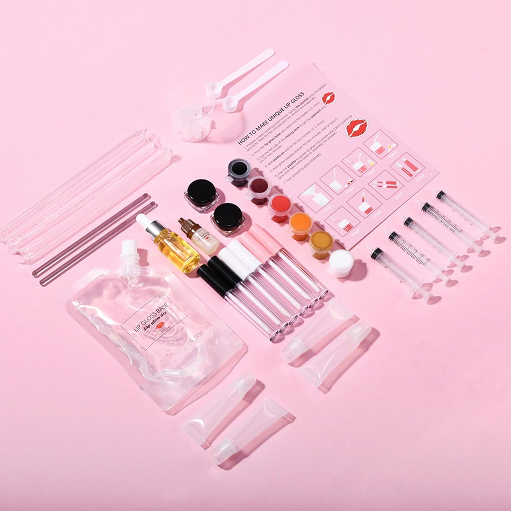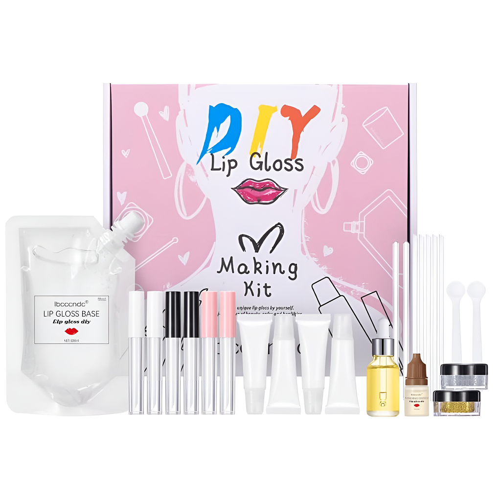 Includes: Lip Gloss Base, Glitter Powders, Jojoba Oil, Flavoring Oil, 6 Color Pigments, 5 Pipettes, 10 High-Quality Lip Gloss Tubes, Stirring Spoon, Stirring Cup
