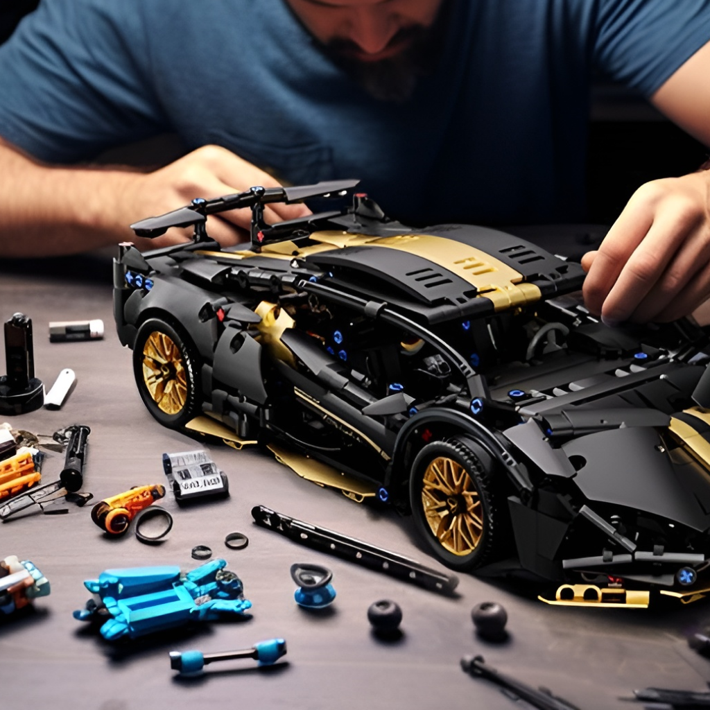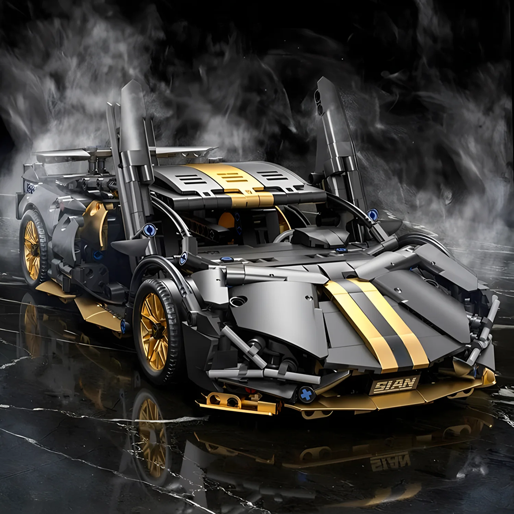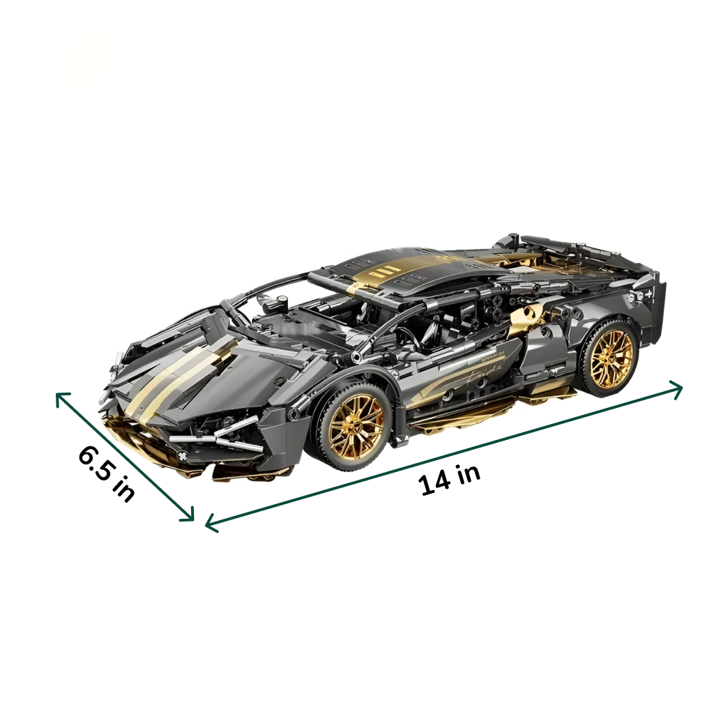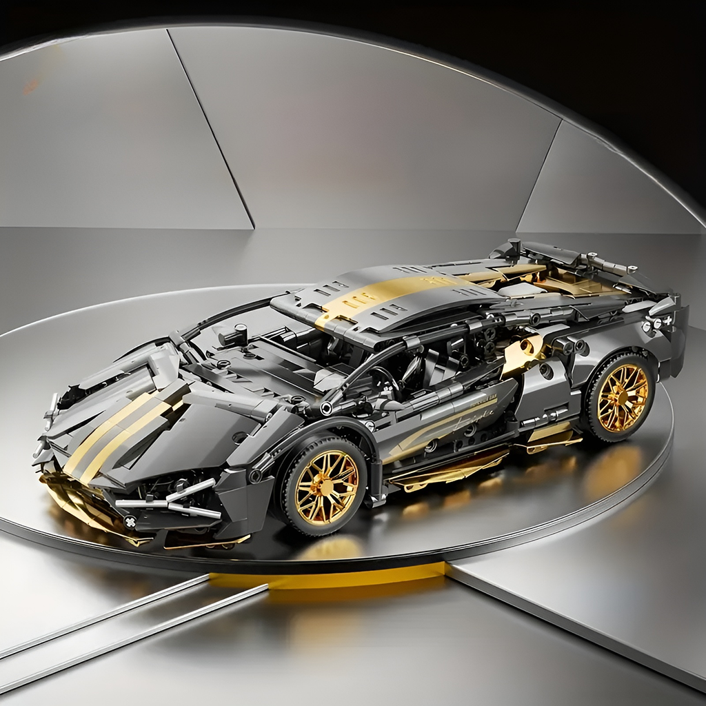 As you snap together each carefully crafted piece, the sport car begins to take shape, showcasing a beauty that mirrors luxury craftsmanship. The elegant black and gold finish, along with the moving parts, brings this car model to life, adding a touch of sophistication to your space.
